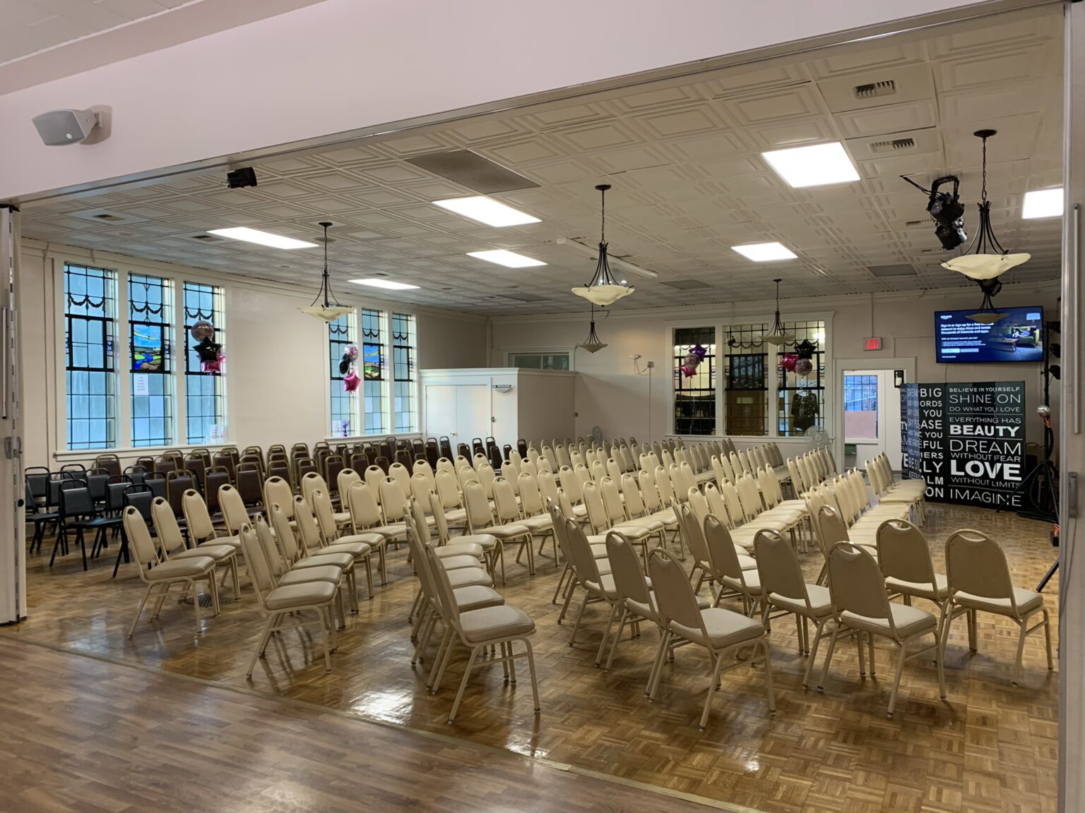 Host your event at Corbin Senior Activity Center. Choose the elegant Henderson Room with hardwood floors, stained glass and a raised stage - perfect for receptions, concerts, celebrations or memorials. Plan a cozy meal in the Dining Hall with adjoining kitchen, ideal for birthdays, retirements and family gatherings. For meetings and intimate occasions, reserve the Carolyn Bryan Suite - North and South - each with a TV and sink (North adds a mini-fridge and microwave; South includes a bridal-prep area). Need a flexible workshop space? The Lower South Classroom offers tables, chairs, a whiteboard and extra card tables. Mix and match rooms to fit your vision - tables and seating provided.